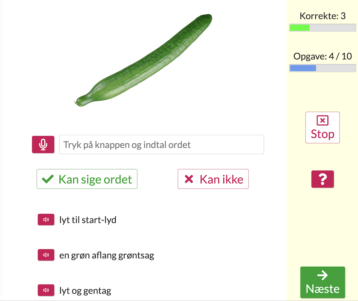 Lykkes det stadig ikke at benævne, får man mulighed for at høre ordet, man skal sige.